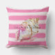 Pink Watercolor Beach Stripes Gold Shell Cushion
