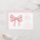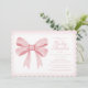 Celebrate the upcoming arrival of a little one with our elegant pastel pink and white baby shower invitation. This timeless design is embellished with an elegant big pink bow. The event details are stylishly presented in blush pink calligraphy and lettering. The back of the invitation is completed in coordinating pink.