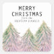 Pink Watercolor Christmas Tree Artistic Square Sti Sticker