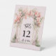 Pink Watercolor Church Wedding Table Number Pedestal Sign