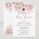 Easily add your custom details to these elegant pink watercolor floral baby shower invitations. The watercolor floral design is in blush pink pastel tones with modern greenery. A choice of background colours are available via customisation.