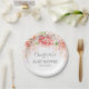 Customisable name baby shower party plates with light vintage blush pink watercolor flowers pattern.