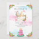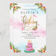 Pink Watercolor Floral Cake Birthday Invitation