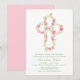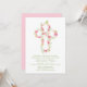Pink Watercolor Floral Cross Baptism Invitation