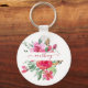 Pink watercolor floral personalised key ring