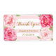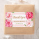 Wedding thank you labels in light pastel pink blush and white stripes with vintage pink watercolor flowers and gold colour text. Perfect for wedding favours or as wedding wine bottle labels.