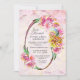 An elegant rustic pink watercolor floral just married oval framed post wedding invitation.