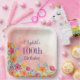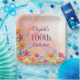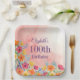 Pink Watercolor Florals 100th Birthday Paper Plate