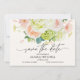 Beautiful watercolor of white and green hydrangeas with pink and cream roses, daisies and small blossoms and leaves create these wedding save the date cards with your details in chic lettering. MATCHING items in our store.