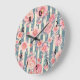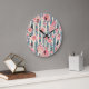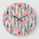 Pink Watercolor Flowers on Striped Pattern Large C Clock