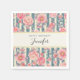 Pink Watercolor Flowers on Stripes Birthday Napkin