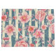 Large gift bag with a beautiful pattern featuring pretty pink flowers layered over top a striped pattern composed of blue and cream coloured stripes.