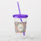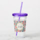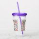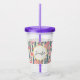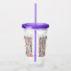 Acrylic tumbler with a beautiful pattern featuring pretty pink flowers layered over top a striped pattern composed of blue and cream coloured stripes. A circle frame with a faux gold foil border, with your personalised name and monogram initial inside.