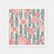 Pink Watercolor Flowers on Stripes Napkin