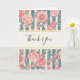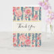 Pink Watercolor Flowers on Stripes Thank You Card