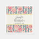 Wedding paper napkins with a beautiful pattern featuring pretty pink flowers layered over top a striped pattern composed of blue and cream coloured stripes. A rectangle frame with a faux gold foil border layered over top with your personalised text inside.