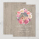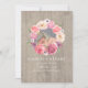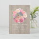 Baby girl floral watercolor pink wreath and rustic wood photo baby birth announcement