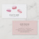 Simple and elegant French macaron design for bakers, cake decorators or bakery professionals features a trio of watercolor macaron cookies in pastel blush pink watercolor. Personalise with two lines of custom text on the front, and add your full contact information to the reverse side. This design also available in vertical and square formats!