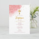 Pink Watercolor Glitter Gold Cross Baptism Girl Invitation