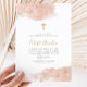Pink Watercolor Gold Cross Girls Baptism Invitation