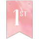 Happy 1st Birthday bunting banner with a pink watercolor background.