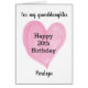 A personalised watercolor pink watercolor heart 20th birthday card for granddaughter, goddaughter, daughter, etc. The front of this pretty 20th birthday card for her can be personalised with the birthday recipient's name. The inside birthday message can also be edited. This would make a unique personalised card keepsake for her twentieth birthday.