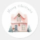 Step into a winter wonderland with our charming Christmas Sticker, featuring a quaint pink house painted in soft watercolors. This sticker captures the essence of a cosy, festive home, inviting warmth and cheer into the hearts of its recipients. The delicate watercolor technique adds a dreamy, nostalgic touch, reminiscent of a peaceful holiday scene. The subtle pink hues offer a unique twist on traditional Christmas colours, creating a card that stands out with its gentle elegance.