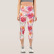 Pink Watercolor Peony Flower Pattern Capri Leggings