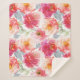 Pink Watercolor Peony Flower Pattern Sherpa Blanket