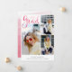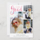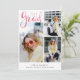 Modern typography pink watercolor "grad" script lettering, 3-photo collage style graduation announcement with pink watercolor ombre pattern backing.