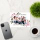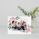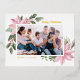 Pink Watercolor Poinsettia Frame Christmas Photo Foil Holiday Postcard