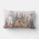 Pink Watercolor Reindeer, Snowman Merry Christmas Lumbar Cushion
