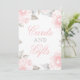 Direct your guests to the gift table with this romantic "Cards and Gifts" sign featuring soft pink watercolor roses and grey-green leaves. Elegant script and serif typography in pink and grey tones create a dreamy, feminine feel that coordinates beautifully with any blush or garden-themed wedding. A lovely finishing touch for your reception decor. All text is fully customisable.