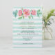 Pink Watercolor Roses Mint Stripes Wedding Invitation