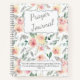 This prayer journal features a pretty pastel pink and soft green floral pattern on a white background. At the top is a silver grey lined ornate banner with your custom text in matching grey at the centre. The bottom has a second banner with the wonderful verse from 1 John 5:14. The back cover has the same pastel rose pattern. Thanks to Watercolor Cliparts on Etsy for the floral pattern.