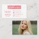 Pretty social media business card with your own photo and details in rosy watercolors. Add your logo at the top, your name in charming tall letters, and your instagram handle, facebook page, email, and website along with title and, on the other side, a profile photo.