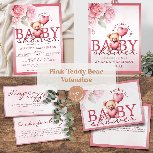 Watercolor Valentine Teddy Bear Baby ShowerDesigned by Ellen W.