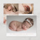A modern birth announcement card to introduce your new baby girl or baby boy. The double sided card features a favourite photo of your new baby while the back features a three photo collage. Personalise with your baby's name, birth date, birth stats and parents names.