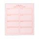 Bring a touch of modern sophistication to your organisation routine with this minimalist notepad. Featuring a chic pink background adorned with crisp red text and boxes, this notepad exudes elegance and functionality. With dedicated sections for each day of the week, alongside a extra notes area, planning your week has never been more convenient. Whether you're scheduling appointments, tracking tasks, or jotting down ideas, this notepad offers the perfect blend of style and practicality. Stay organised and feel free to edit the colours and fonts to match your personal brand!