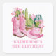 Pink West Cowgirl Cactus Watercolor Birthday Square Sticker