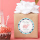 Round sticker for birthday favour with whale design.