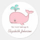 Pink Whale Bookplates Classic Round Sticker