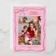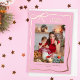 Wish your friends, relatives, and acquaintances happy holidays with a trendy personalized rose gold foil Christmas card with your photo against a pink background. Your name and the year in real rose gold. Choose between gold, silver, and rose gold for the foil.