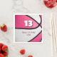 These cute basketball themed birthday party paper napkins are fully customisable and feature the realistic, abstractly oversized image of a basketball that has alternating pink and white panels - personalise with your custom text - by katz_d_zynes
