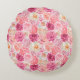 A lovely pink, white, blush pink, and magenta coloured floral round accent pillow
