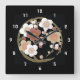 Pink White Brown Sakura Japanese Kimono Pattern Square Wall Clock