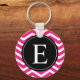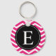 Pink White Chevron Black Monogram Key Ring