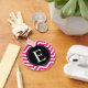 Customise this vibrant pink and white chevron pattern and striking black monogram design with your initial.