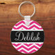 Pink White Chevron Black Name Key Ring