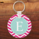 Customise this vibrant pink and white chevron pattern and pastel turquoise monogram design with your initial.